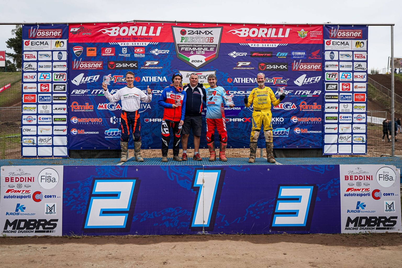 Nella categoria Femminile, la pluricampionessa mondiale Kiara Fontanesi (GasGas – Fiamme Oro) ha proseguito la sua marcia trionfale con un’altra vittoria. Fontanesi, imbattuta nel campionato, ha approfittato di un errore dell’olandese Danee Gelissen (Yamaha – Ceres71), che ha visto sfumare la possibilità di interrompere la striscia vincente della campionessa italiana. Giorgia Montini (Honda – Gaerne) ha ottenuto due solidi terzi posti, mentre Emanuela Talucci (KTM – Gaerne Pardi Royal Pat) ha trionfato nella categoria Under 17.